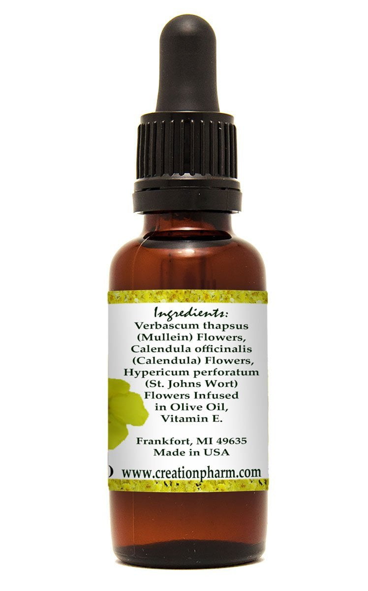 Mullein flower infused oil acts as an anodyne to take away the pain of the earache while also exerting lymphatic action on the area around the ear to help resolve the infection.
