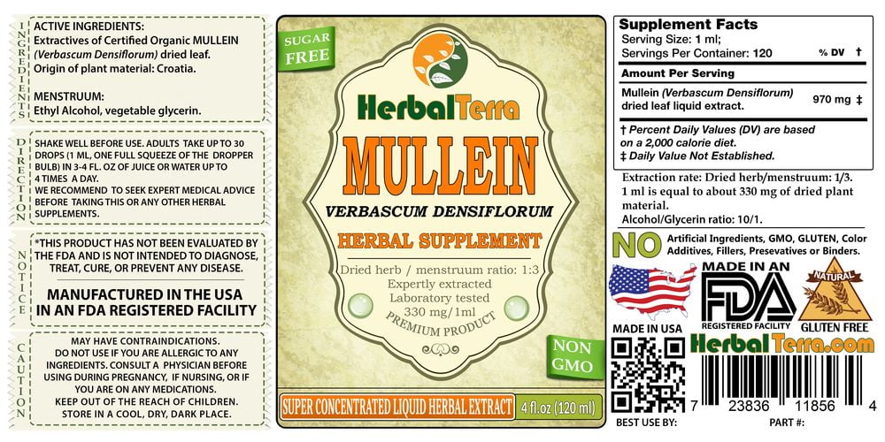 Mullein Verbascum Densiflorum Tincture Organic Dried Leaves Liquid Extract Herbal Terra Usa 32 Oz Walmart Com Walmart Com