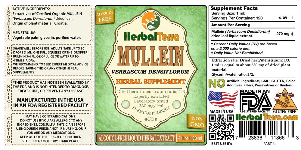 Mullein Verbascum Densiflorum Glycerite Organic Dried Leaves Alcohol Free Liquid Extract Herbal Terra Usa 2x4 Oz Walmart Com Walmart Com